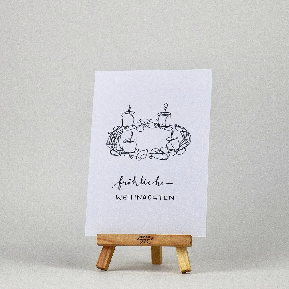 Ein weihnachtliches Postkartenset bestehend aus sechs schlichten Weihnachtsmotiven.